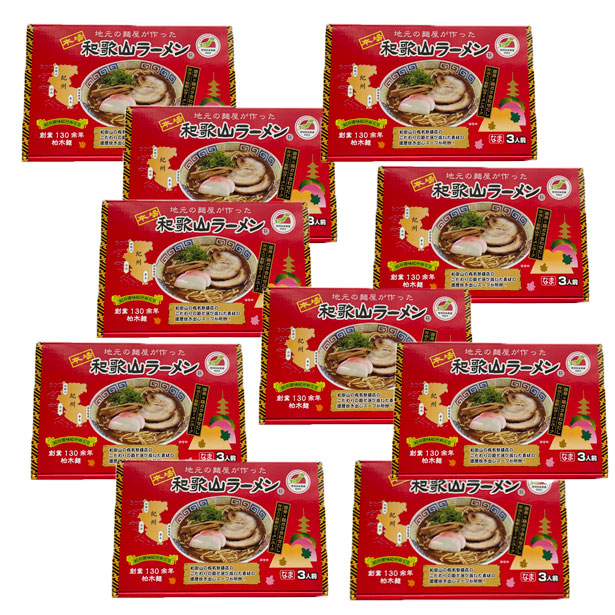 和歌山ラーメン 麺110g・とんこつ醤油スープ47g 各3袋×10箱 創業明治20年 老舗 柏木製麺所