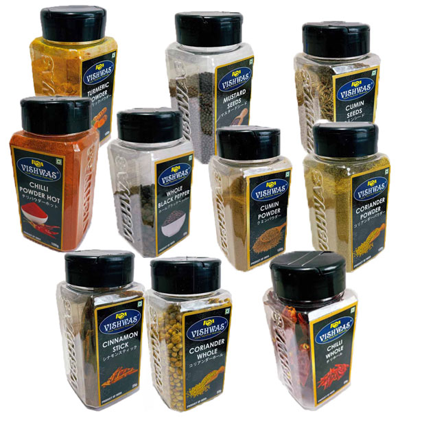 多くのインド料理店へ卸されている 信頼のできる会社”Vishwas”のスパイスです。
